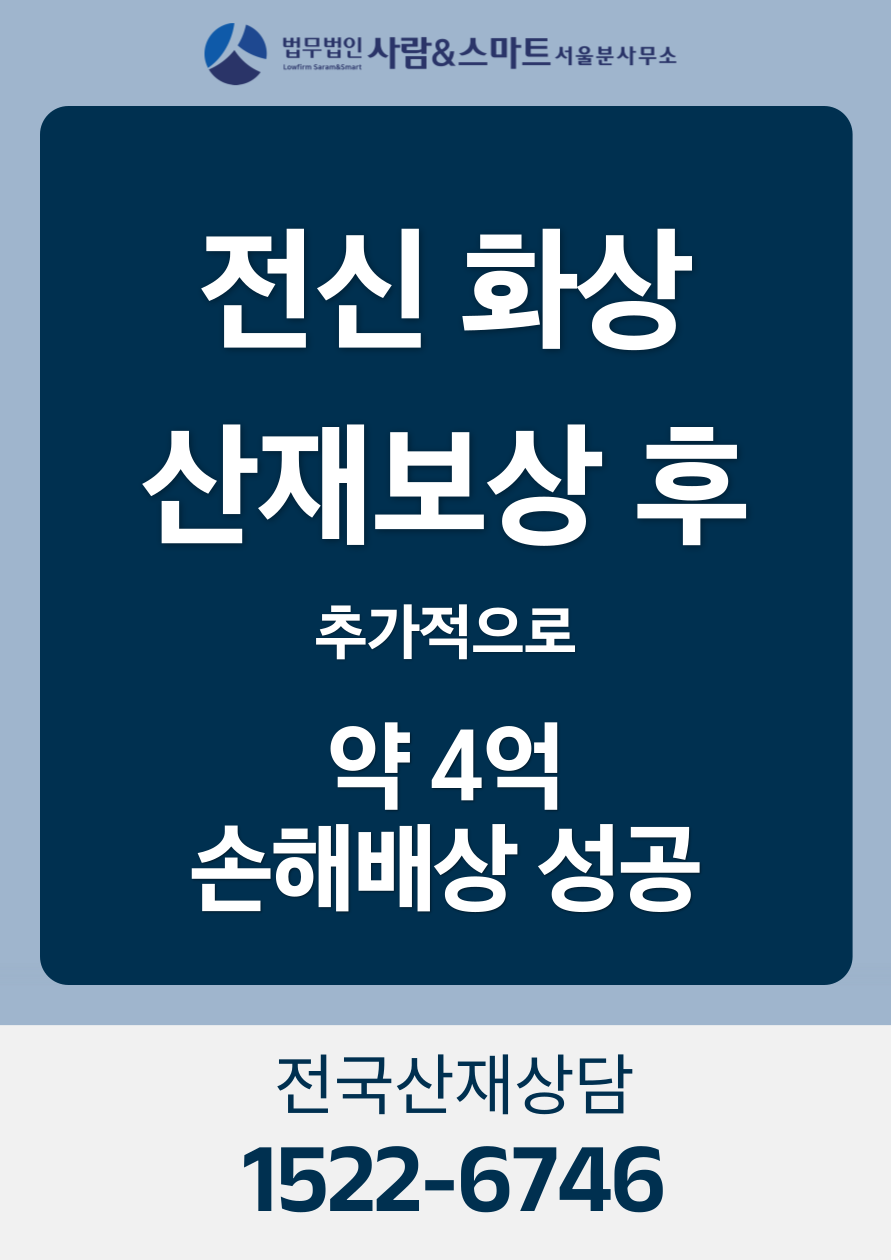 더 자세하게 실제 화상산재 보상 후 추가 손해배상 합의 4억 성공 사례 알아보려면 클릭하세요.
