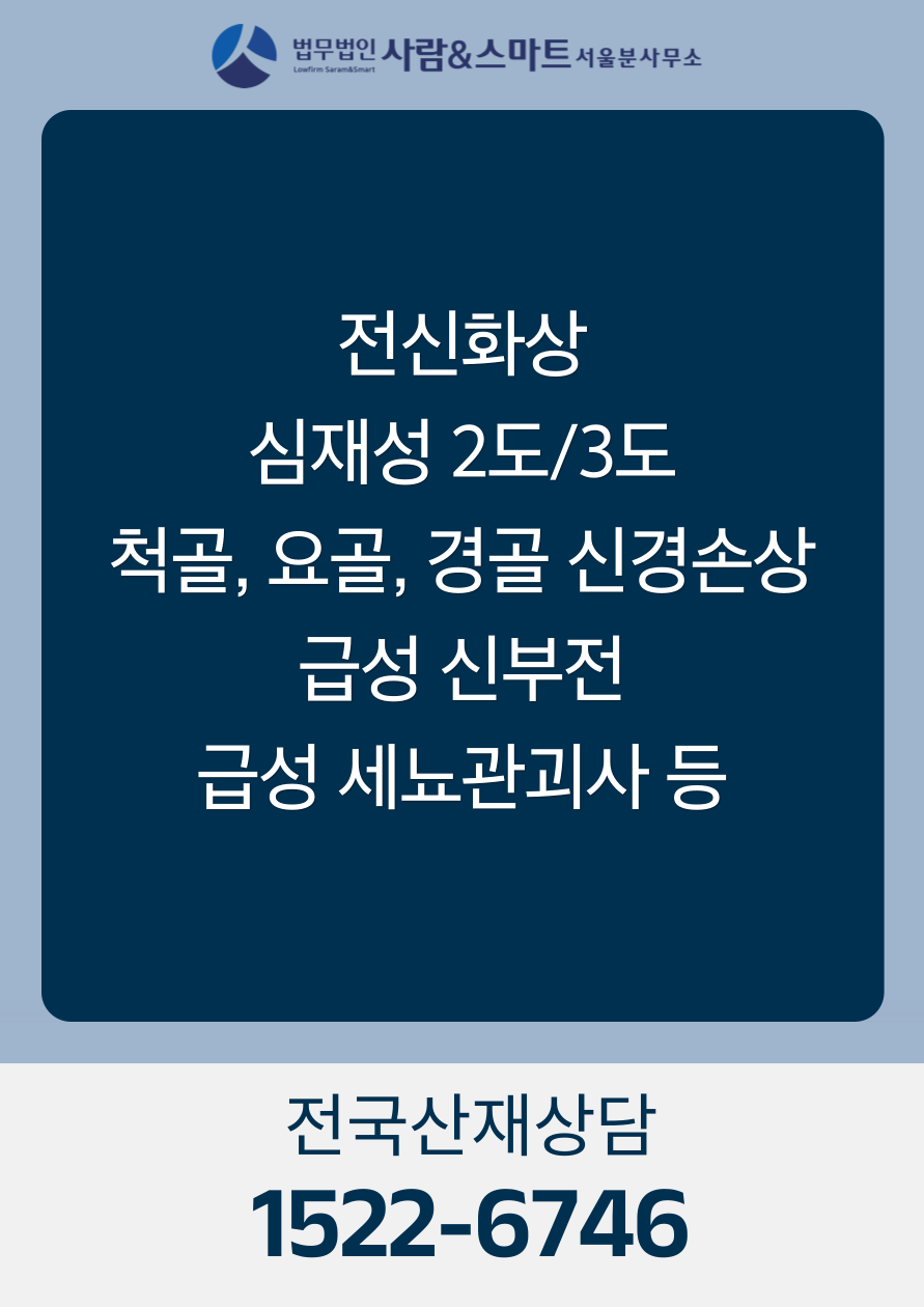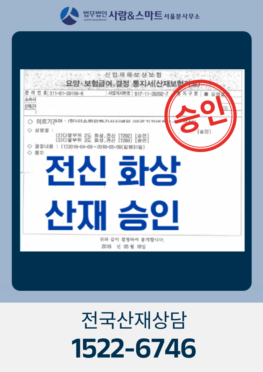 실제 전신 화상 산재 손해배상 합의 경험이 있는 법무법인 사람앤스마트 서울분사무소 김찬영 변호사/노무사와 함께 사건을 점검해 보시길 권합니다.